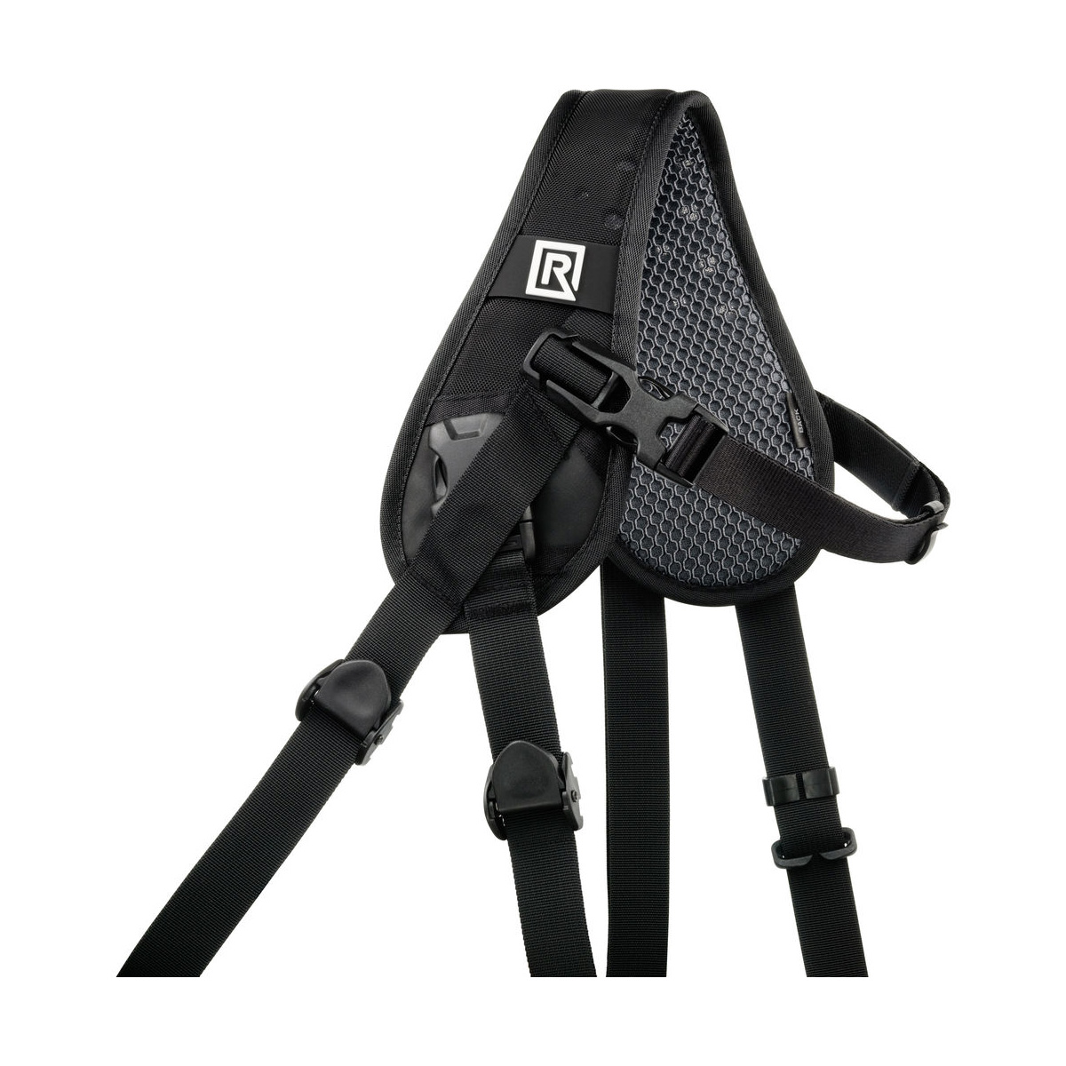 To attach to a camera or a lens, both of the BlackRapid Hybrid Breathe Camera Strap’s webbings feature a durable, brass and zinc-alloy CR-3 ConnectR locking carabiner. Also provided is a BlackRapid FR-5 FastenR Breathe for every carabiner. Each FR-5 FastenR Breathe creates a connection point using a camera or lens’s 1/4″-20 tripod mount and has a large, integrated D-ring for easy use with BlackRapid webbings that utilize a CR-3 ConnectR.