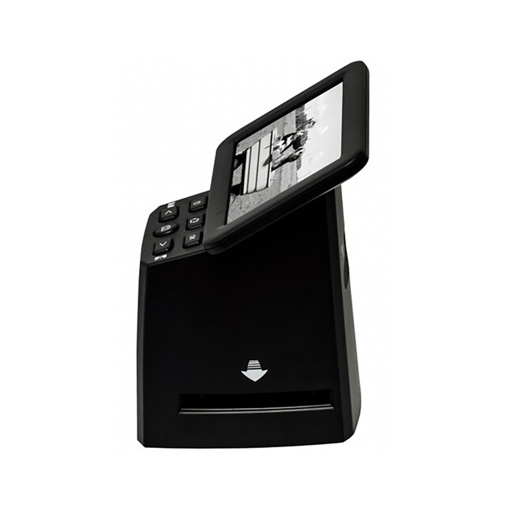 Efficiently digitize large quantities of 35mm slides and negatives with high quality using the Braun reflecta x33 Film Scanner. This user-friendly scanner is equipped with a 15.3MP CMOS sensor that quickly delivers high resolution scans of up to 5472 x 3648 pixels, with an interpolated resolution of up to 5760 x 3840 pixels. Its 5″ IPS LCD display offers a wide viewing angle, making the selection, viewing, and scanning process simple and convenient. The x33 can digitize an image in under two seconds and directly saves scanned images as JPEG files to an SD card (sold separately), making it a stand-alone device that is independent of computers. The included 35mm film holder can hold up to six frames, while the slide holder is compatible with 35mm film slides up to 3.2mm thick, ensuring optimal flatness and protection for your valuable film and memories.