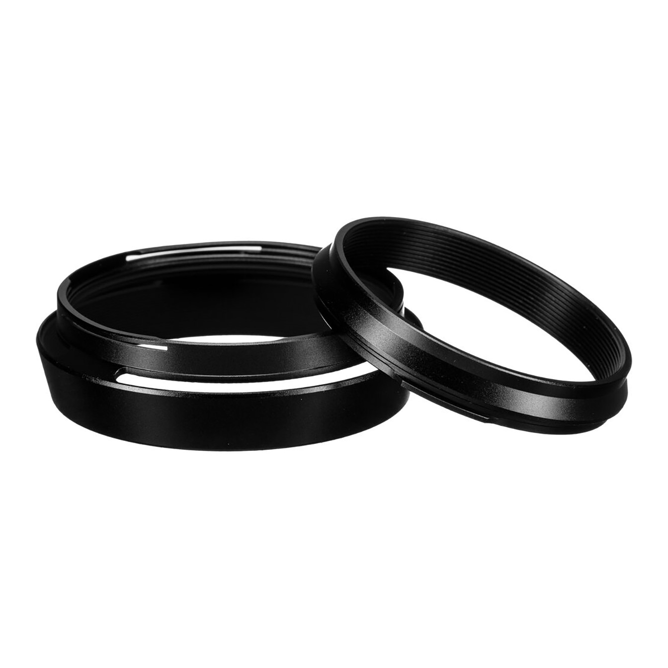The FUJIFILM LH-100 Lens Hood and Adapter Ring is a black, metal lens hood that is specifically designed for the 23mm lens of the FUJIFILM X100V and X100VI cameras. It helps to minimize lens flare by deflecting stray light from entering the lens. The hood also provides additional protection to the camera and lens from accidental impact, bumps, and scratching.