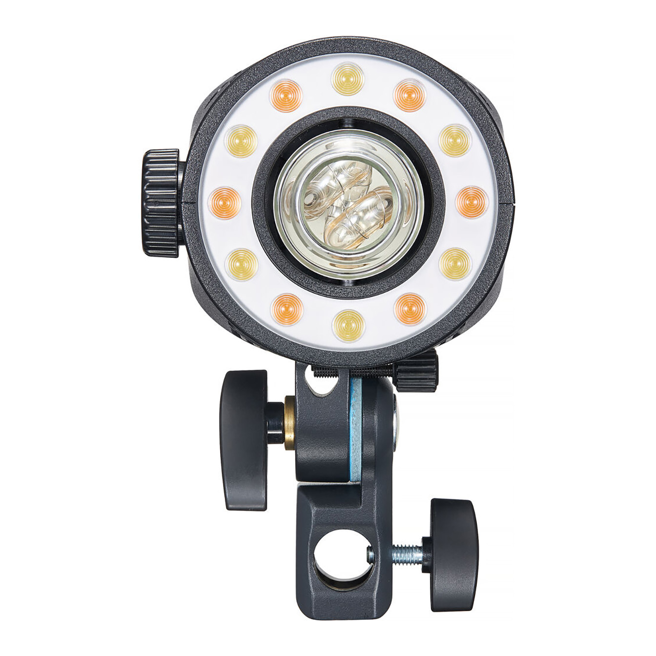 – **Bi-Color LED Modeling Light**: Both flash heads include adjustable **bi-color LED modeling lamps** (2800K-6000K), offering 1400 lux at 3.3′. The modeling light can either mimic the flash power for previewing shots or be adjusted independently from **10 to 100%**.