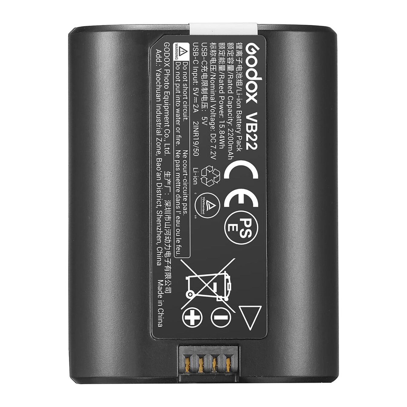 Efficient Battery Power: A removable 7.2V, 2200mAh lithium battery provides quick 1.7-second recycling times and approximately 650 full-power flashes per charge. Godox includes the necessary USB-C cable and power adapter.
