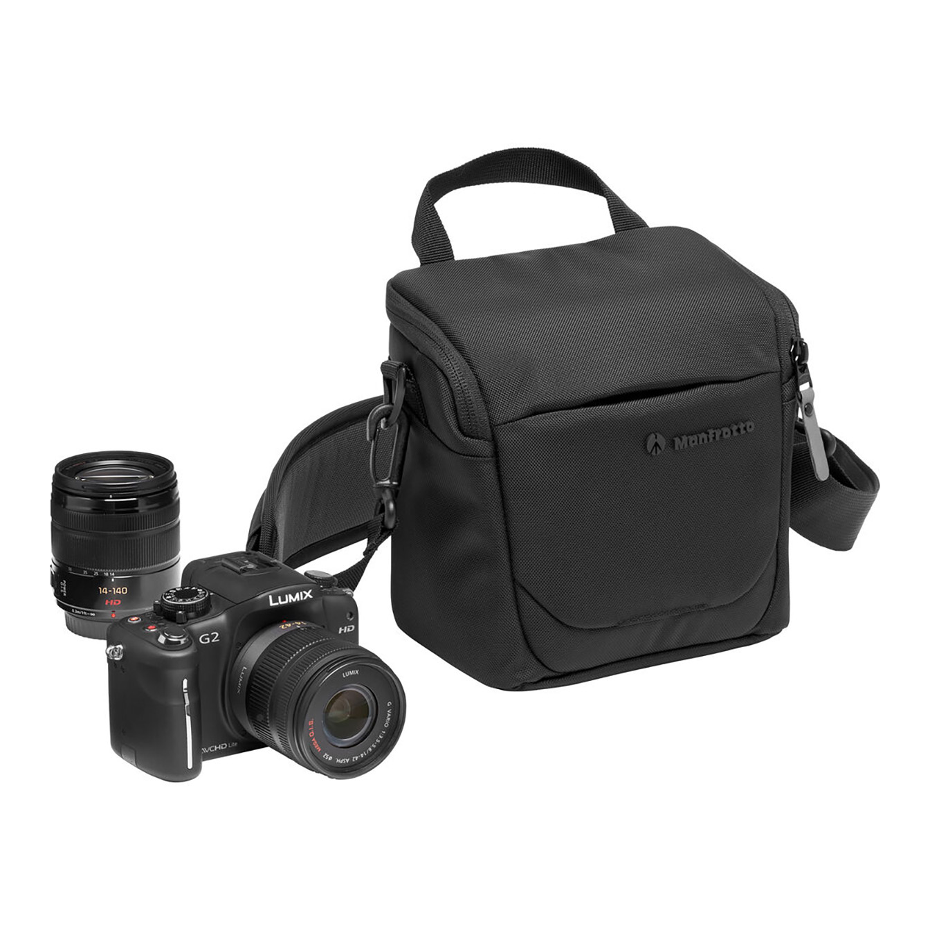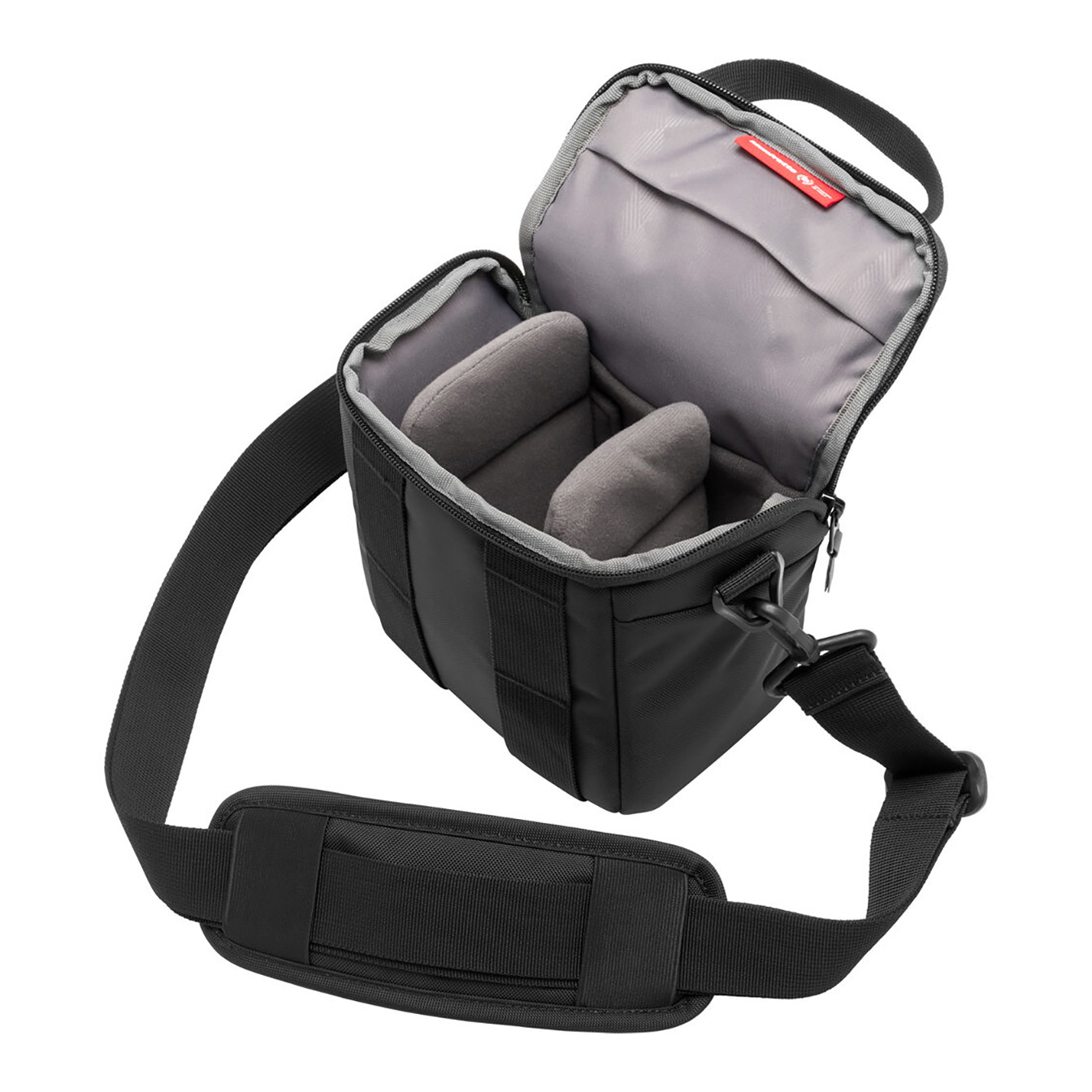 The **Manfrotto Advanced III 3L Camera Shoulder Bag** (Small) is perfect for a basic photo kit. It features a padded interior measuring **6.3 x 6.7 x 4.3″** with two dividers to securely organize a DSLR with an attached kit lens and a second lens. The wraparound top zipper allows the flap to open fully for quick, unobstructed access to your gear. An internal slip pocket keeps memory cards, cables, or small accessories safe and organized.