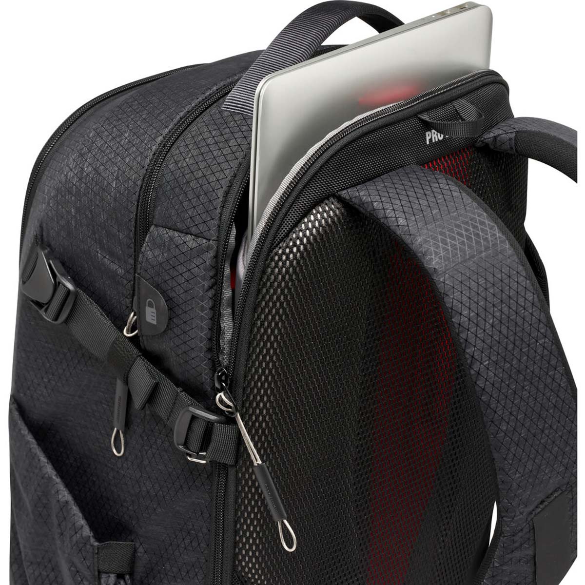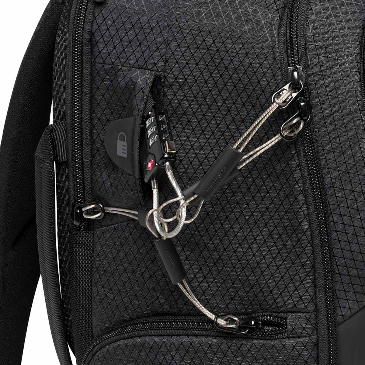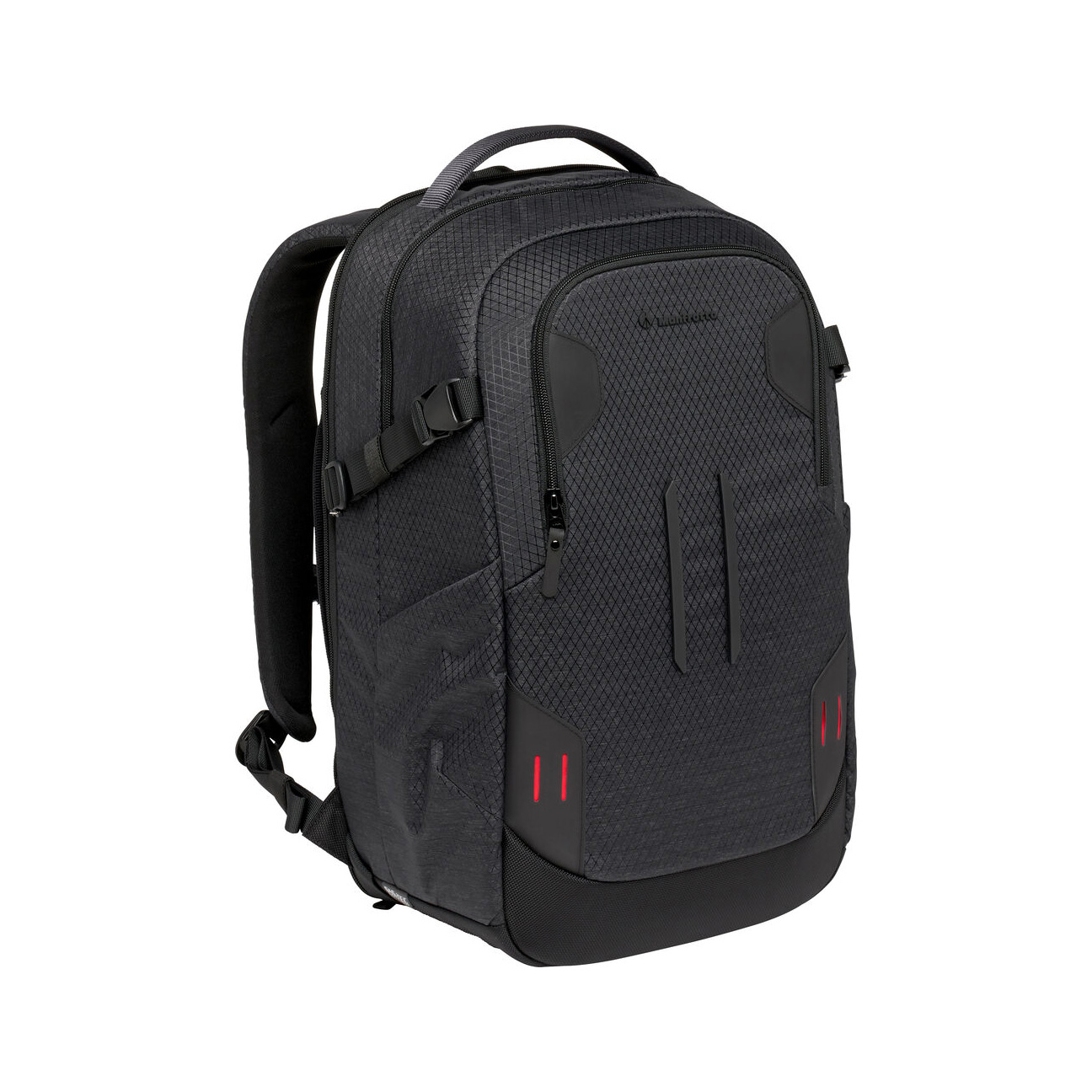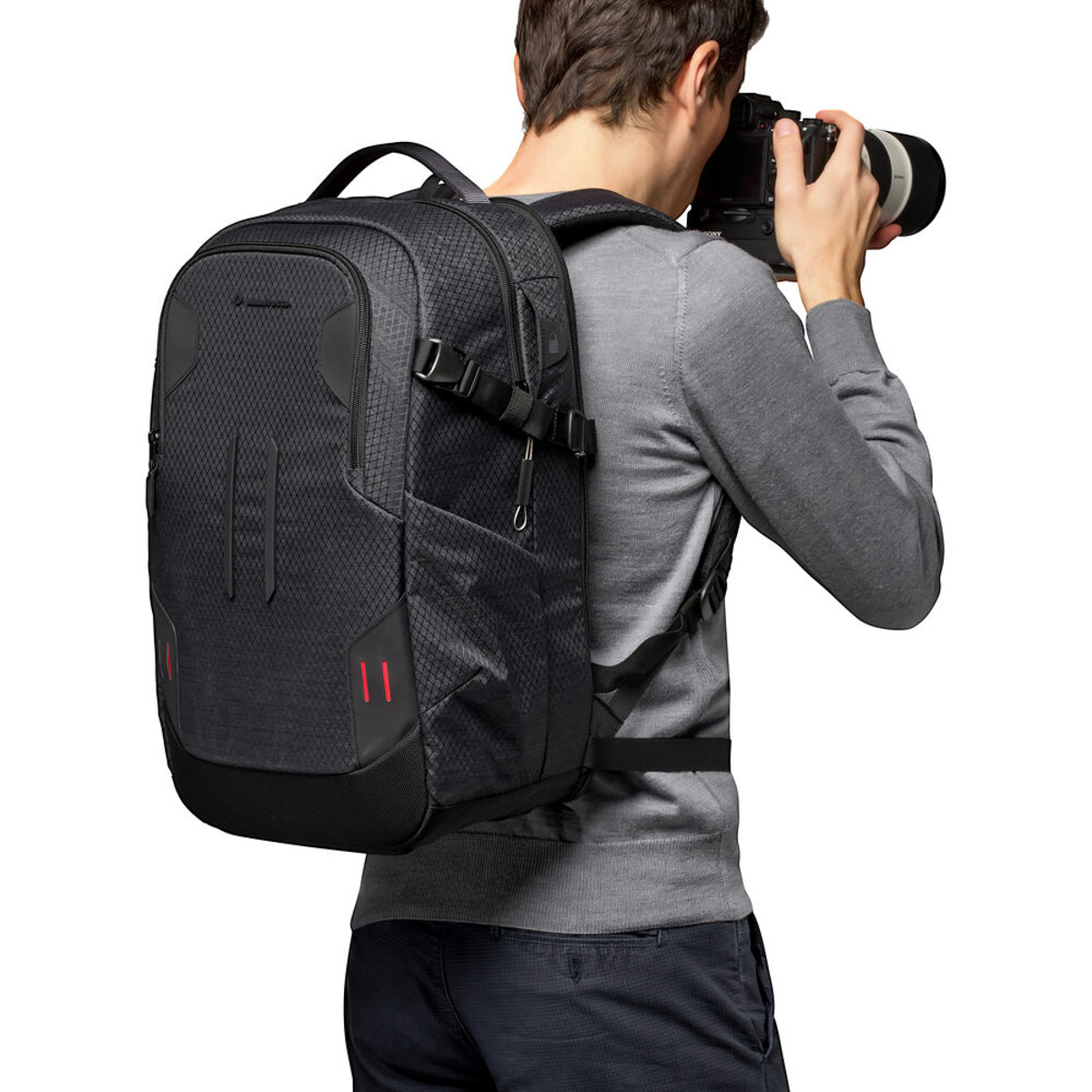 The Manfrotto PRO Light Backloader Camera Backpack M is a professional camera bag specifically designed to provide unparalleled gear protection to fit the preference and workflow of any professional photographer or filmmaker. The PRO Light backpacks usher in the all-new M-Guard™ Protection System specifically designed and laboratory tested to guarantee the highest level of protection and shock resistance especially on areas of the bag where protection is most crucial. M-Guard™ dividers are made of high-density EVA foam that provide exceptional shock absorption while maintaining a super slim profile. In addition the SAS-TEC, a viscoelastic memory foam and multi-impact endurance, adds a structural reinforcemnt on the base of the backpack providing extra shock absorbing properties. For an even better worry-free experience, a TSA approved padlock can be used to secure the steel wire puller to close the main compartment. The PRO Light Backloader comes with a safe rear access into a fully padded camera gear compartment with customizable interiors. For full shooting experience, the Backloader M holds 2-3 full frame DSLR or mirrorless cameras with portrait grip on the main compartment plus multiple lenses. Alternatevely the internal organization arrangement can be customized to meet different storage needs thanks to a moveable interior panel that can split the internal space in 2 additional different ways: the top compartment can be dedicated to the 20% to personal items and easily accessed by the quick top opening and the other 80% to gear or interchangeably carry 80% personal items and 20% camera gear. The top access point serves as an alternative for reaching into the most used cameras or lenses. In front is a multi-section compartment both internal end extrenal for small accessories and personal items along with a laptop section that holds a 15 laptop. The Backloader features a double-sided tripod connection for travel sized tripods, an adjustable chest strap for better carrying, and a DuoFace sun and rain cover that repels moisture and reflects sunlight to keep the gear cool and dry all day long. The backpack is made of water-repellant RipStop nylon/polyester fabric with reinforcement yarns to achieve a balance of light weight, unique look, and high capacity performance. Duraflex® hardware, YKK® zippers, hypalon reinforcement, trims and pullers make the pack both ultra-lightweight and strong enough to withstand the most intense use to ensure long-term protection for large amounts of gear.