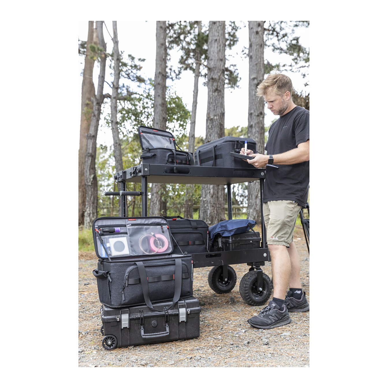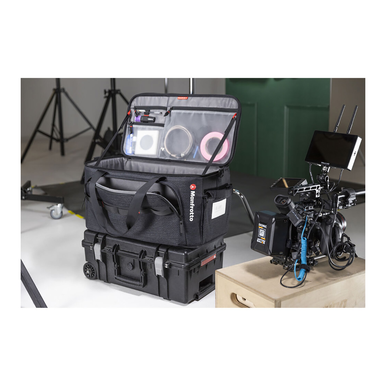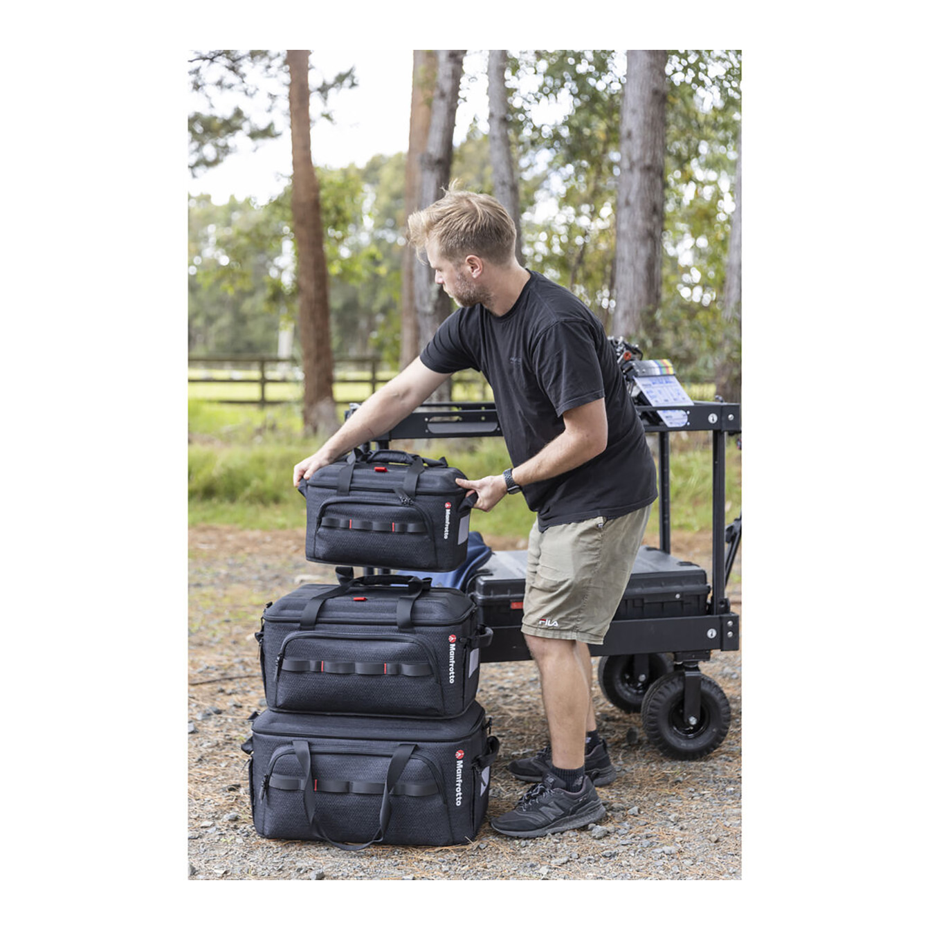 Stackable Design: Safely store multiple Cineloader bags on top of each other.