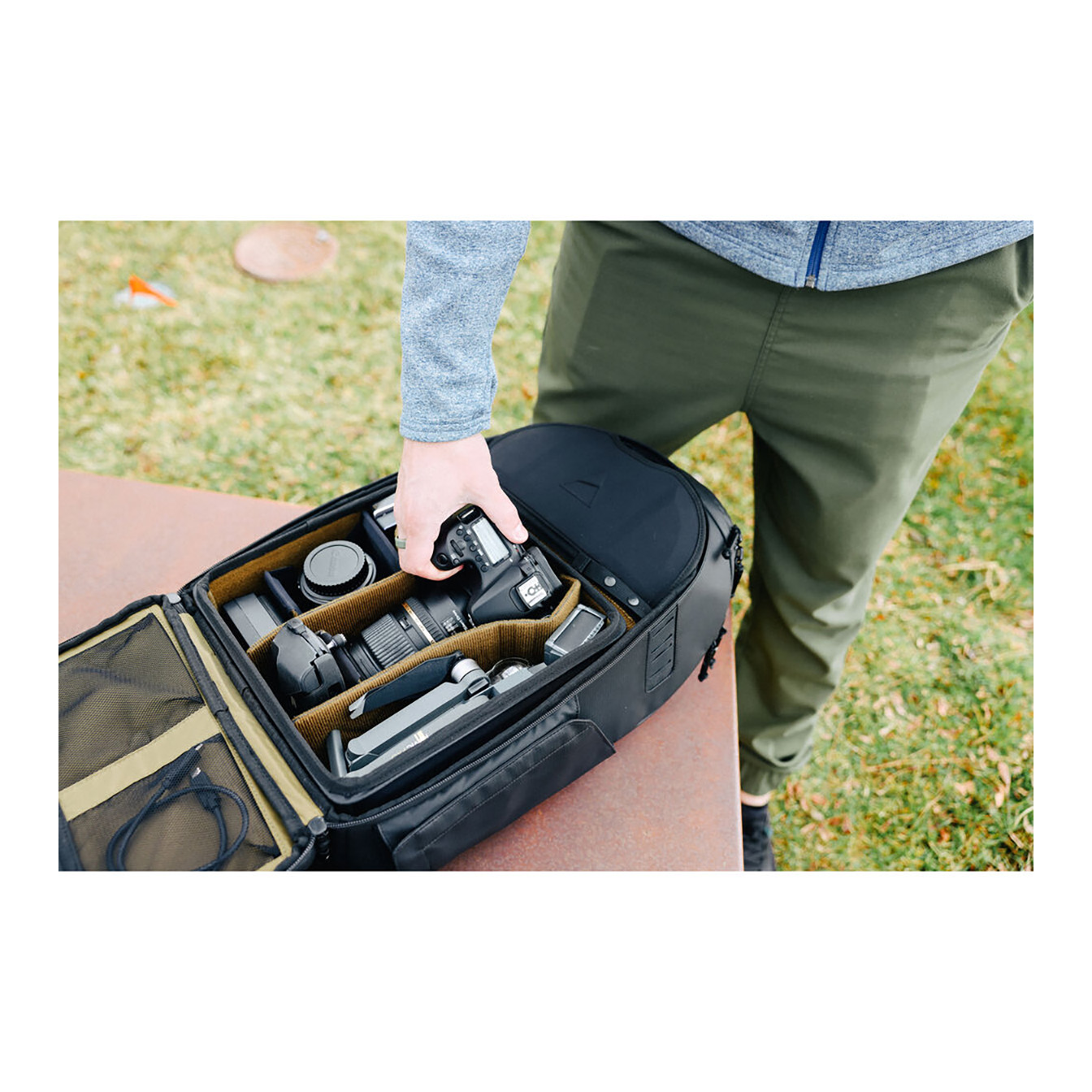 This bag is equipped with an adjustable ladder system that allows you to expand the top section of the bag, tailoring it to your specific needs. Accessing your gear is a breeze with both quick top access and full-back access. The rear compartment boasts four interior zippered pockets, ideal for storing smaller items. On the exterior, you’ll find two magnetic pockets designed to hold water bottles securely, doubling as reliable tripod holders. Furthermore, the bag features an external sleeve that accommodates laptops up to 16 inches in size.