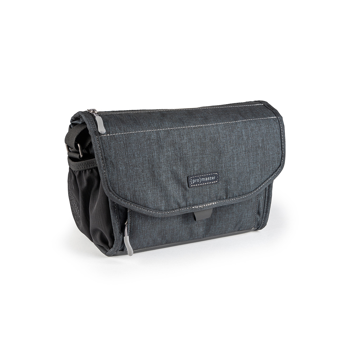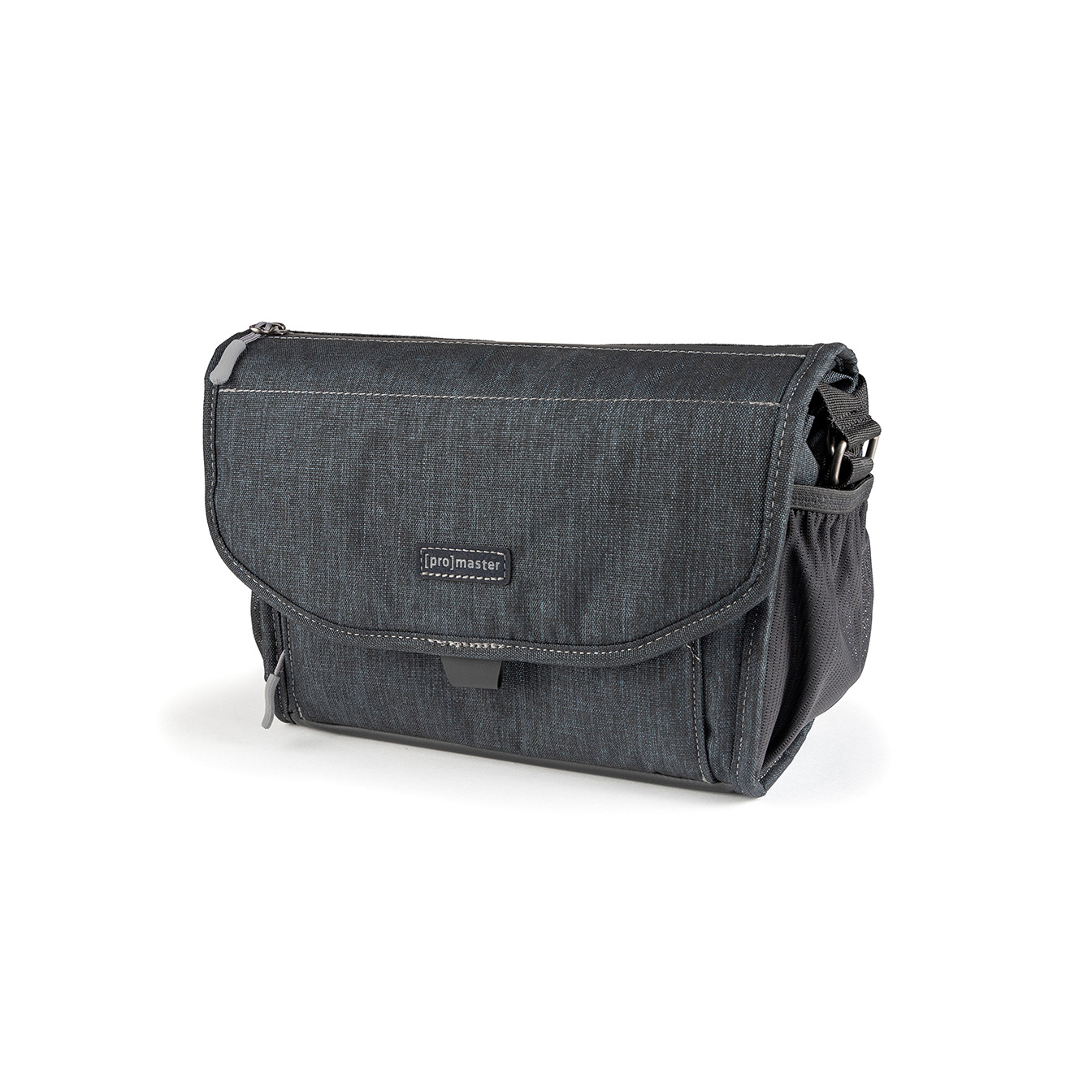 This beautiful, deep blue, over-the-shoulder camera bag offers generous storage and smart features for its size, making it the ideal companion for your mirrorless or DSLR setup. Its sophisticated design, accented by silver stitching and metal hardware, blends elegance with exceptional functionality.