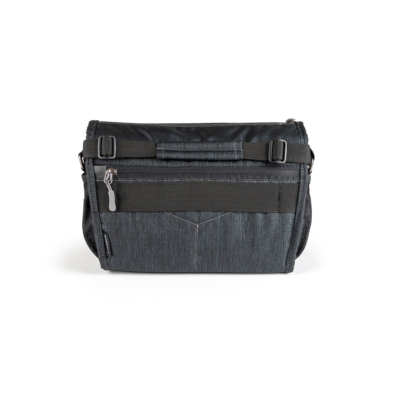 The back of the bag features an additional zippered compartment for flat, non-bulky items like a trail map, filters, or a cable release.