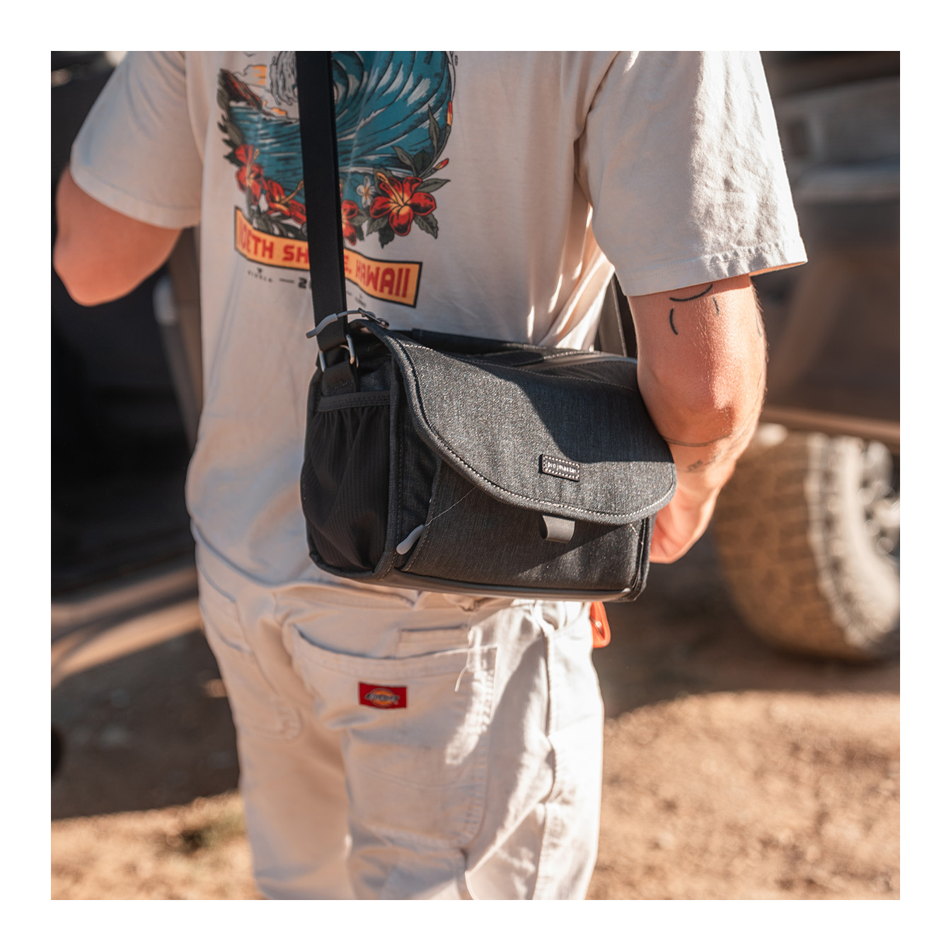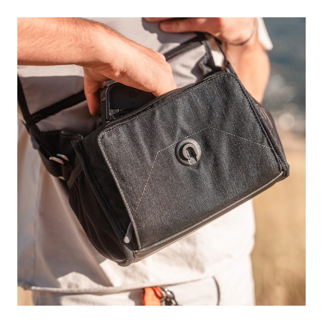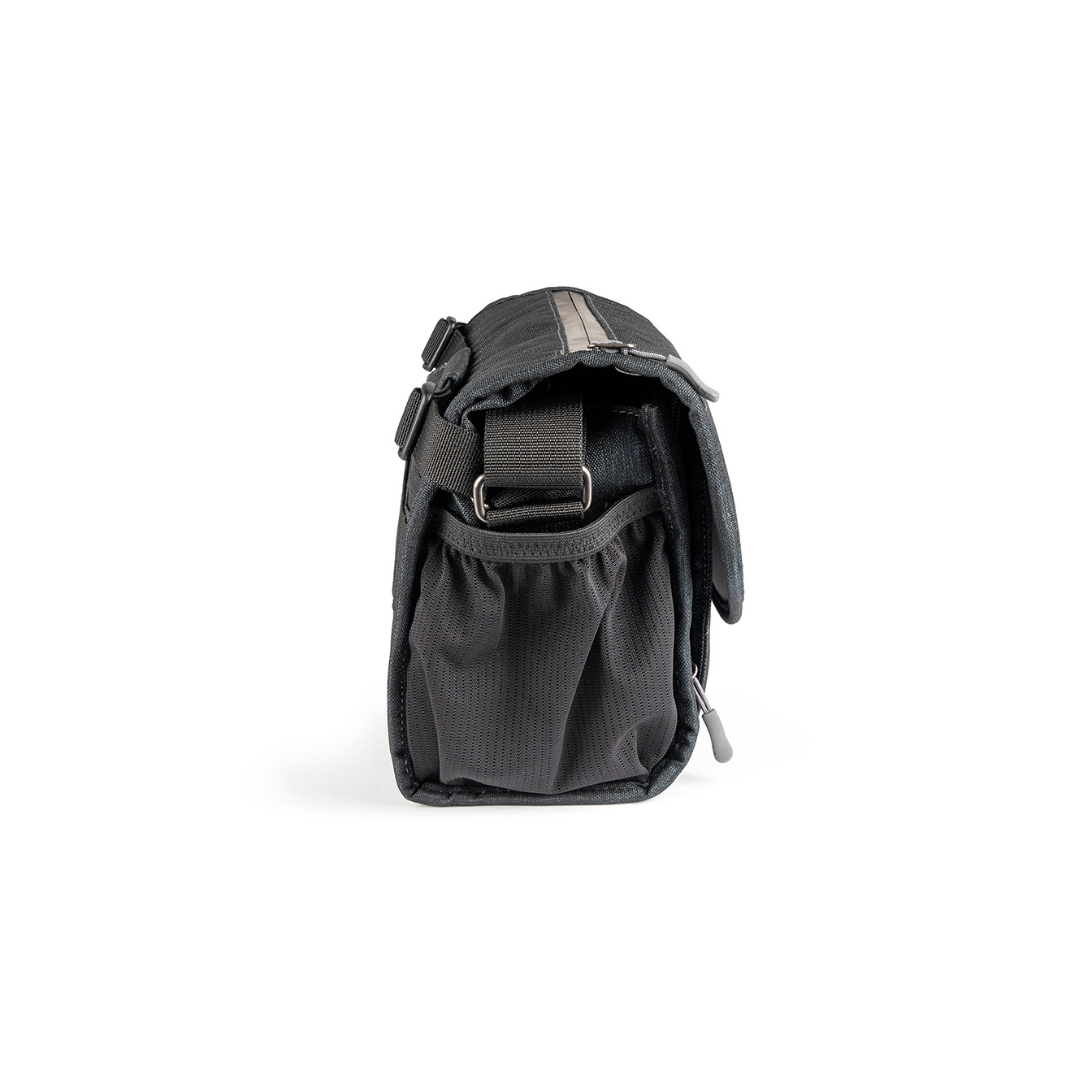 The main flap features a fast-action magnetic Fidlock® latch. Simply give the front flap a tug downward to open, and it effortlessly snaps securely closed when returned to its resting position.