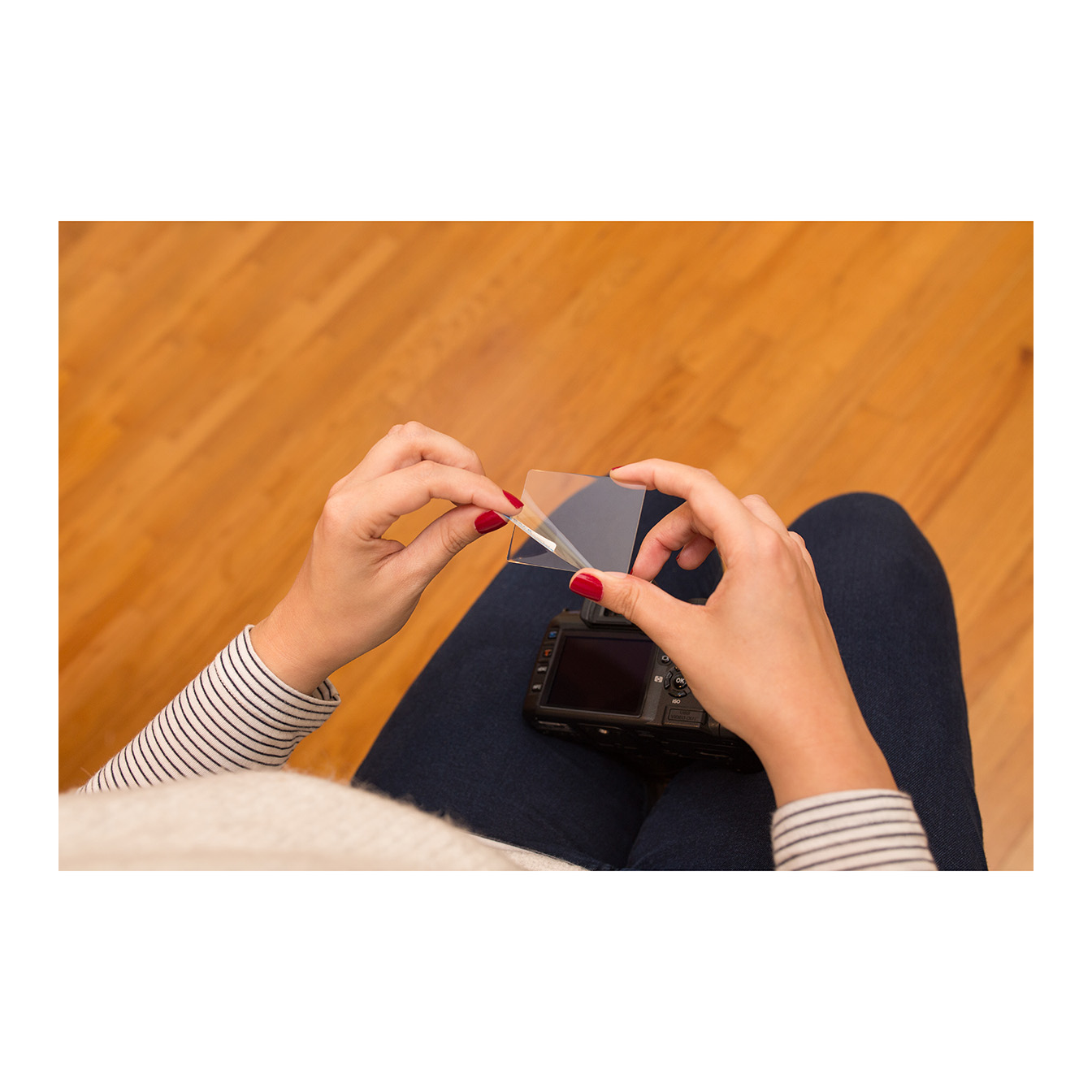 Static Adhesion Technology: Applied easily through static adhesion, this shield requires no messy glues or adhesives. It stays securely in place but can be removed without leaving any residue on your camera’s screen.