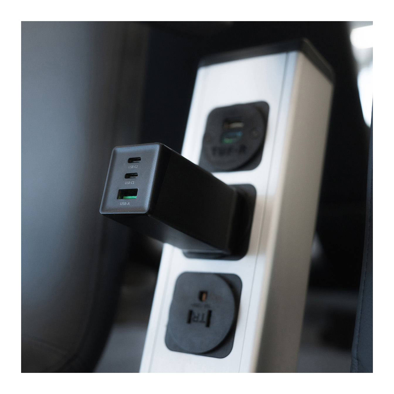 Dual USB-C (C1 + C2): Power is split intelligently, providing up to 20W for the top port and 45W for the lower port.