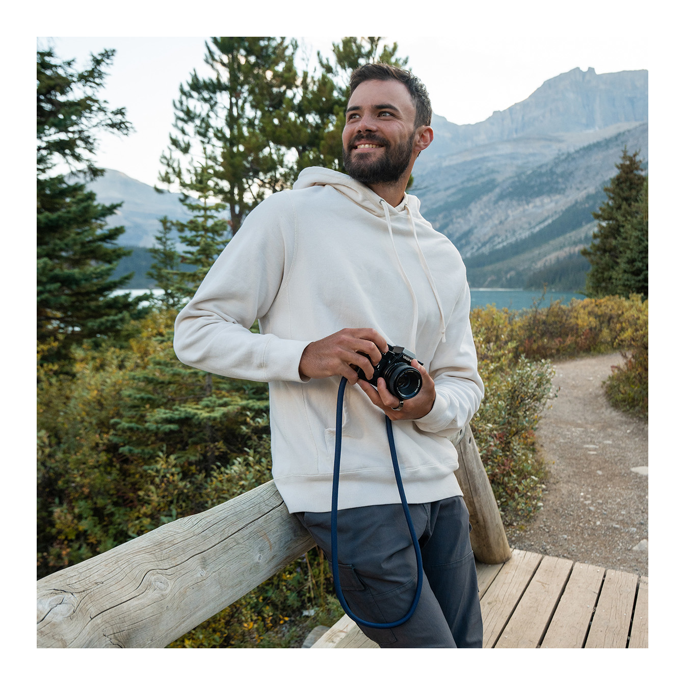 The strap attaches securely to your camera via split ring connectors, which are routed through protective tabs to prevent any metal from rubbing directly against the camera body — a thoughtful design that helps avoid scratches.