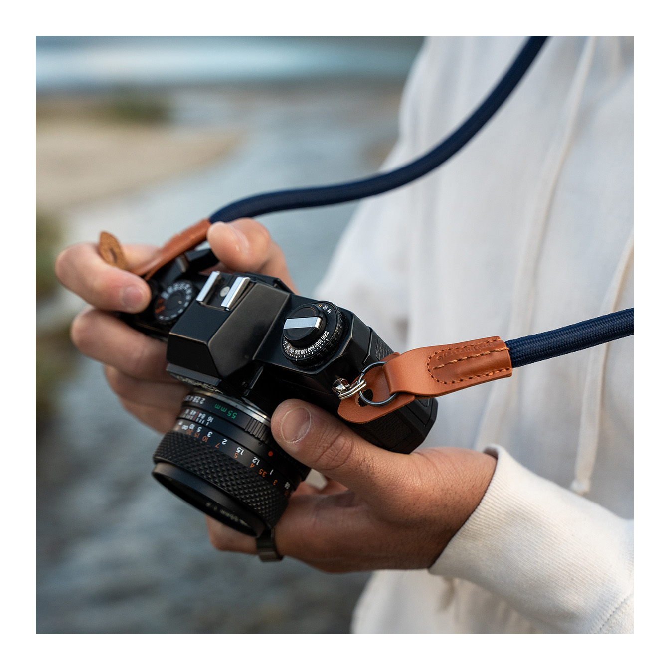 Stylish and understated in deep indigo with cognac accents, this ProMaster Rope Strap is crafted with a unique weave specifically chosen for all-day comfort. Unlike typical rope straps that can feel rough, this one uses a soft yet durable material with a slight natural stretch for added flexibility — and it’s water-resistant for everyday use.