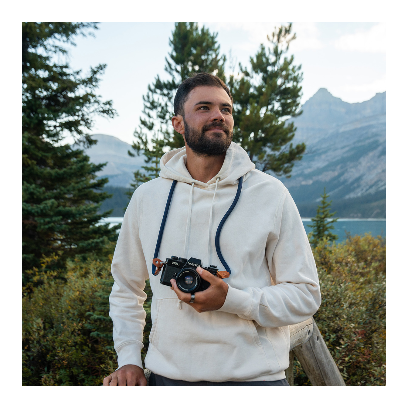 The strap attaches to your camera using split ring connectors, which feed through protective tabs designed to prevent the metal from contacting or scratching your camera body — a smart, secure connection method.
