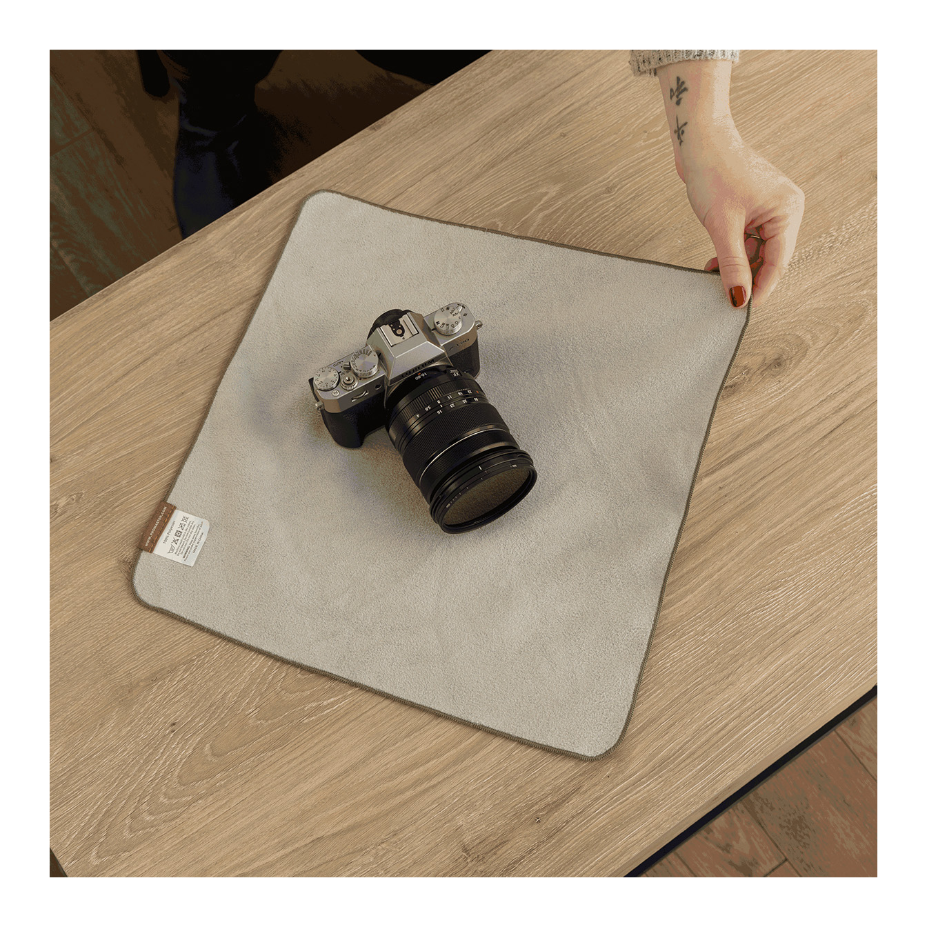 In addition to protecting your gear, this multipurpose wrap also doubles as a microfiber cleaning cloth. You can use it to safely wipe away dust and smudges from your lens elements or display surfaces, keeping your equipment clean and ready for your next shot.