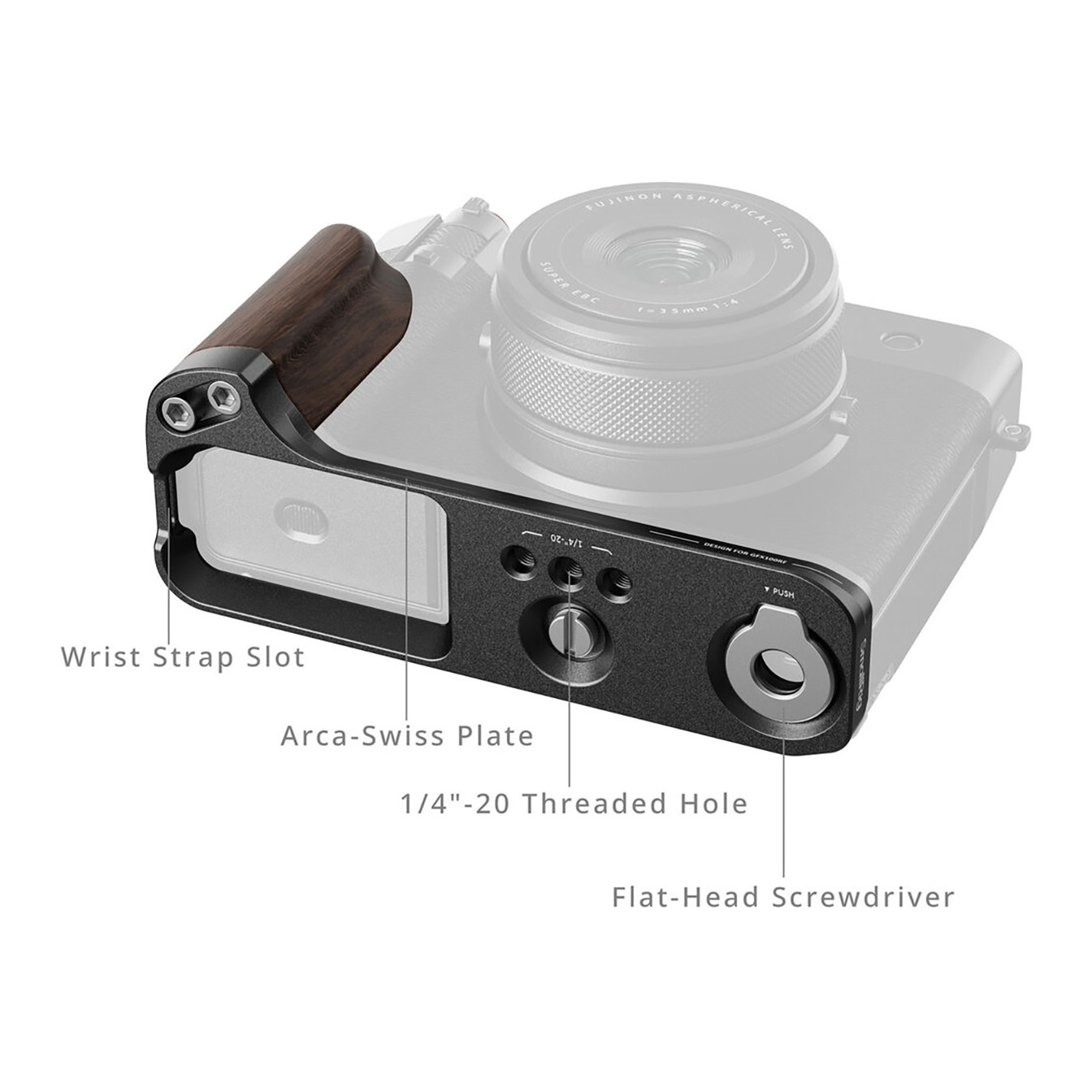 SmallRig L-Shape Mount Plate with Wooden Handle for FUJIFILM GFX100RF: Enhanced Grip, Stability & Style