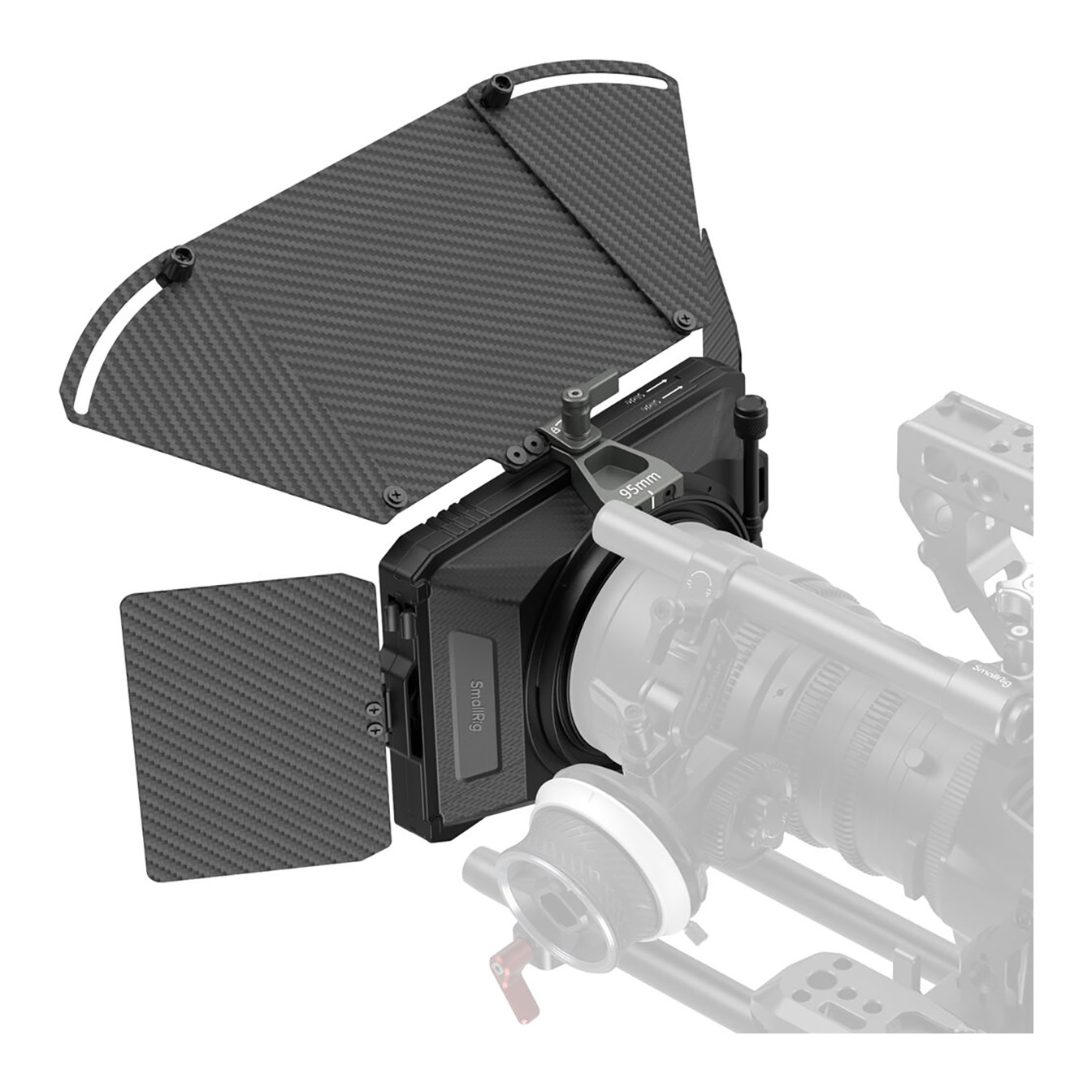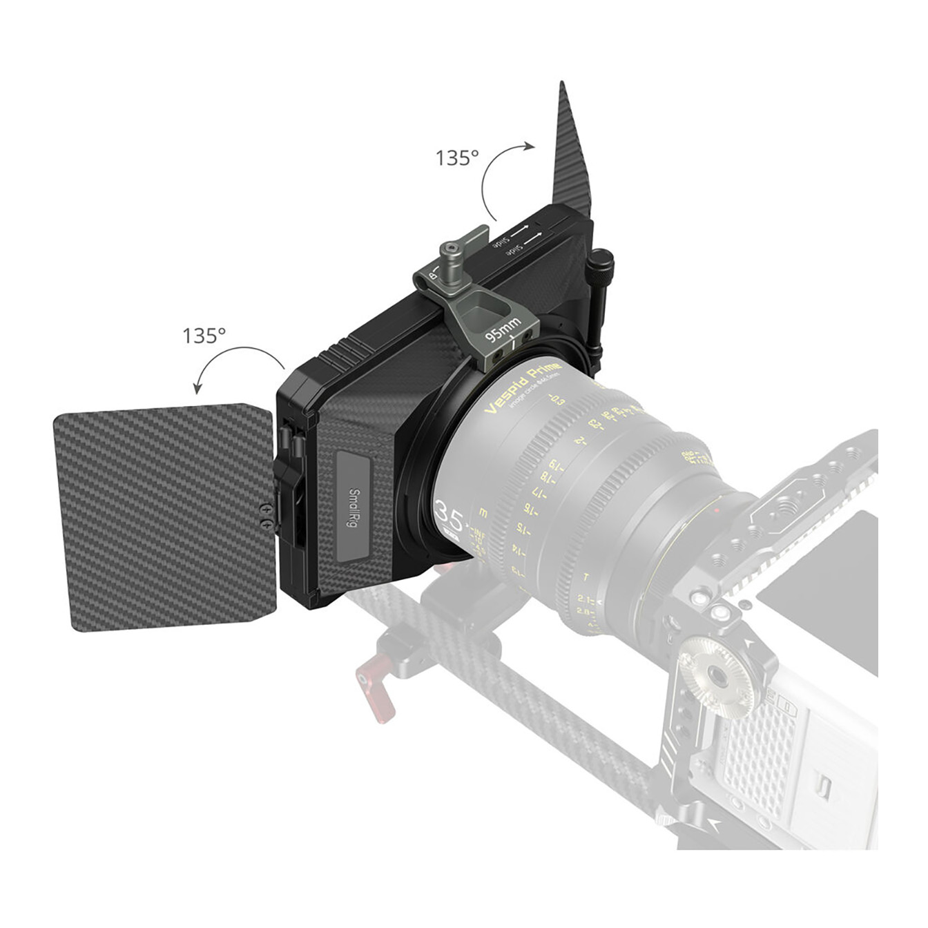 Adjustable Flags: Both the top and side flags are highly adjustable for precise light control. The top flag opens up to 180°, while the side wings extend up to 40°. The side flag can be mounted on either the matte box or the filter tray and also opens up to 180°.
