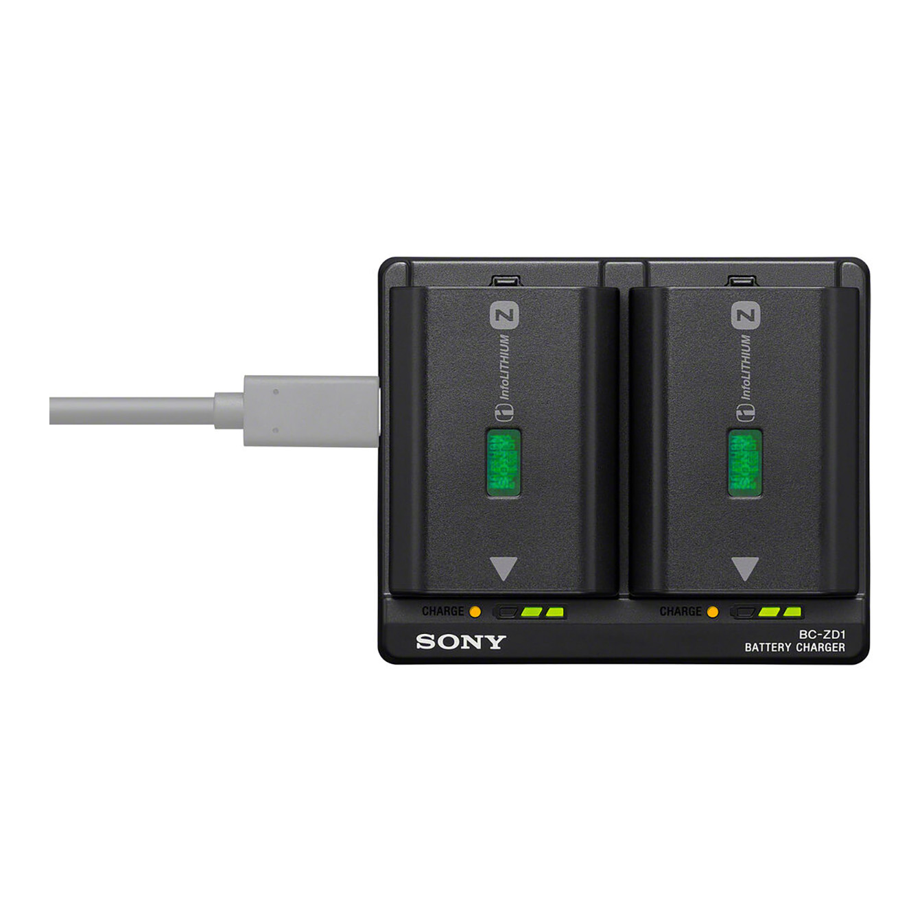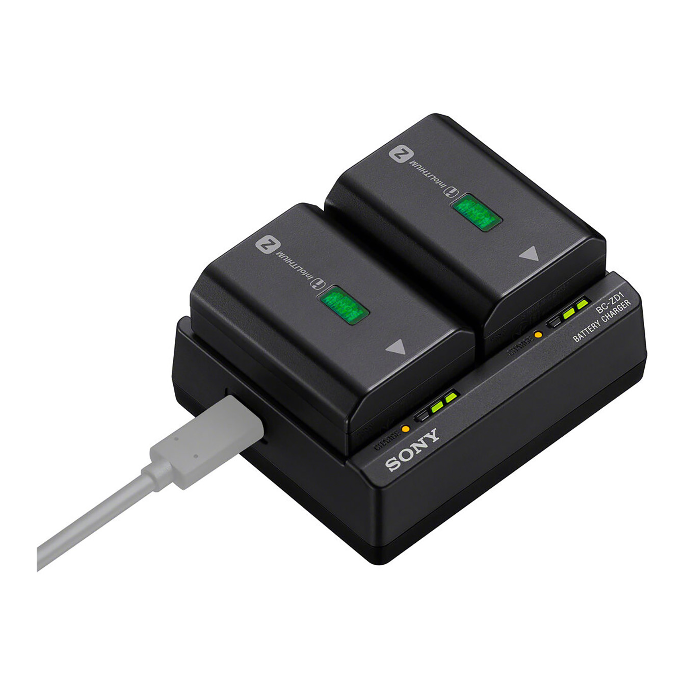 The **Sony BC-ZD1 Dual-Battery Charger** is designed for **simultaneous charging** of two high-capacity **NP-FZ100 batteries**, providing an efficient solution for powering your gear during events or extended shoots. With its capability to fully charge both batteries in approximately **155 minutes** when paired with a compatible USB-C charger, the BC-ZD1 ensures you’re always ready for continuous operation.