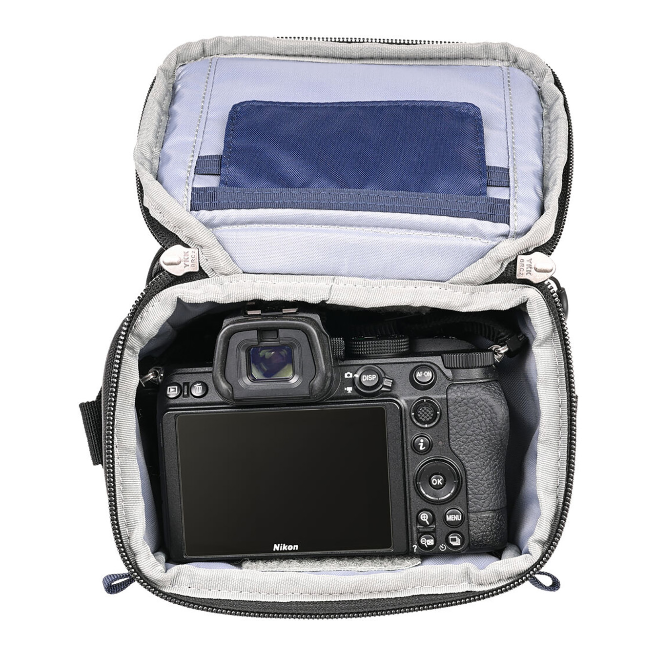 Perfect for cameras like the Sony A7, Canon R8, Nikon Z6/Z7, or FUJIFILM X-T5 with a 24-70mm f/4 lens, this holster features a zippered pocket on the top lid for easy access to accessories and an additional pocket under the lid for storing spare memory cards, lens caps, and other essentials. The holster lid conveniently opens away from your body, and a seam-sealed rain cover is included to protect your gear in adverse weather. With durable YKK RC zippers and easy-to-grip loop pulls, this holster ensures your camera stays secure and accessible.