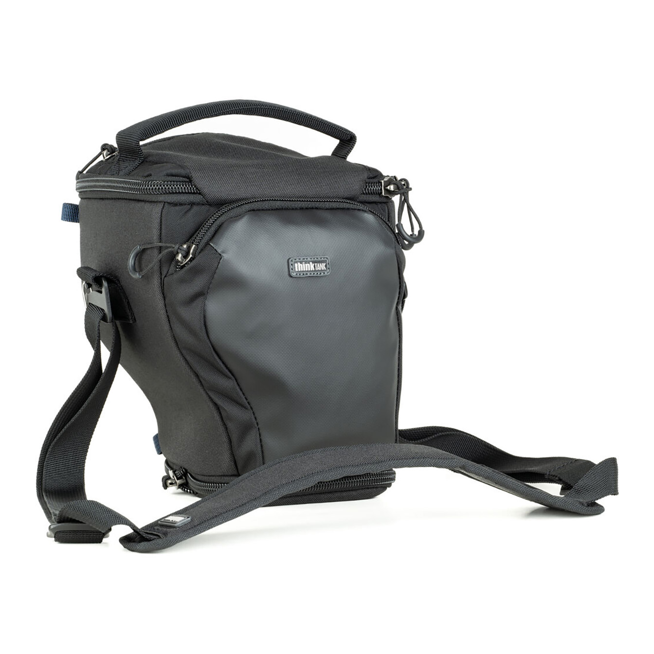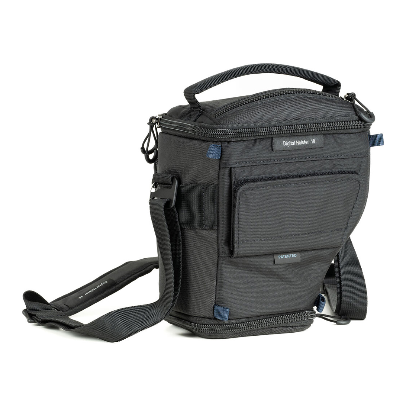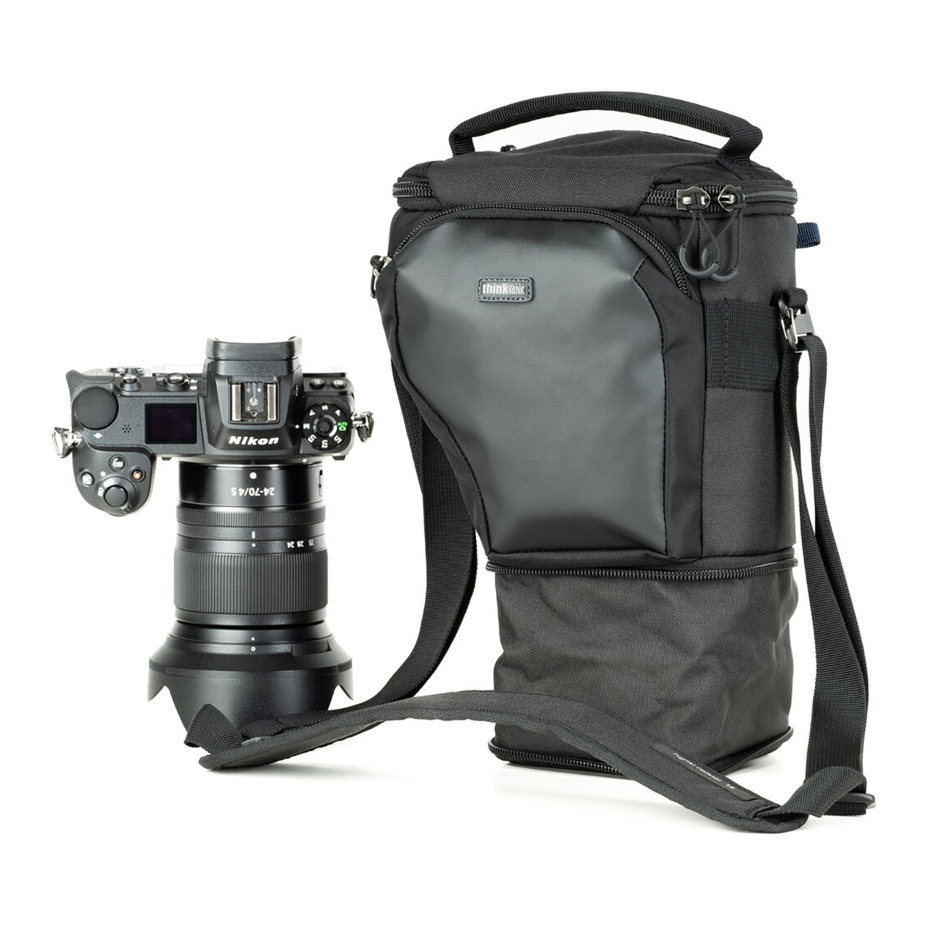 Safeguard your camera on the go with the Think Tank Photo V3 Digital Holster 10. Designed with adjustable interior dimensions from 6.5 to 9.8 inches, this holster easily accommodates a large compact camera with a 28-70mm lens and reversed hood. The versatile “pop down” feature allows you to extend the holster to fit a camera with a 24-70mm f/2.8 lens and reversed hood.