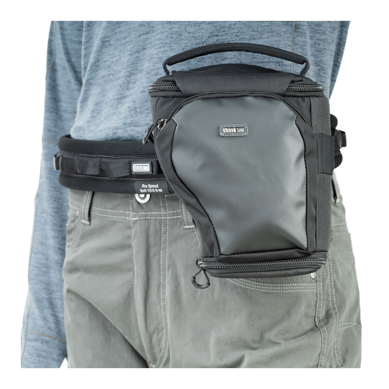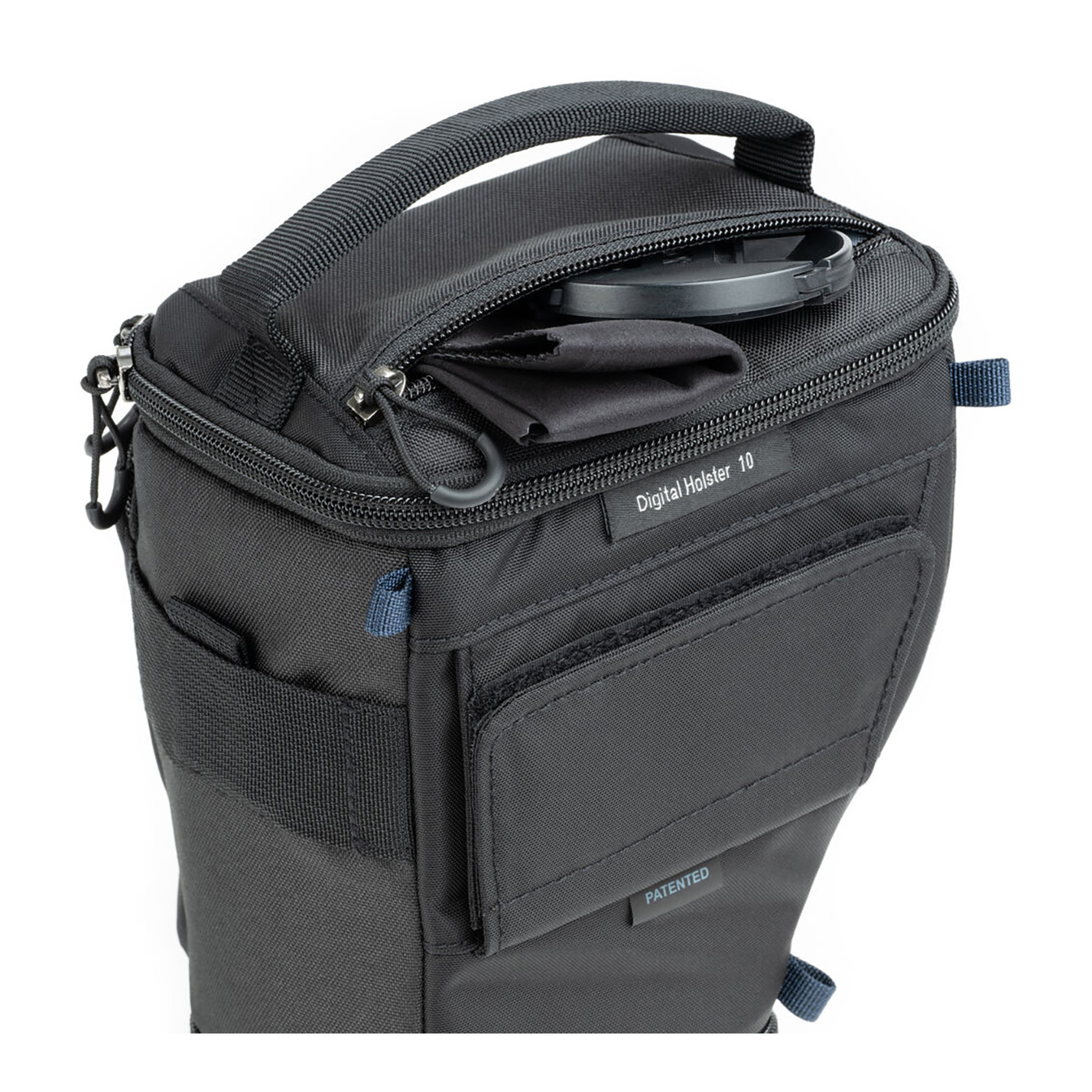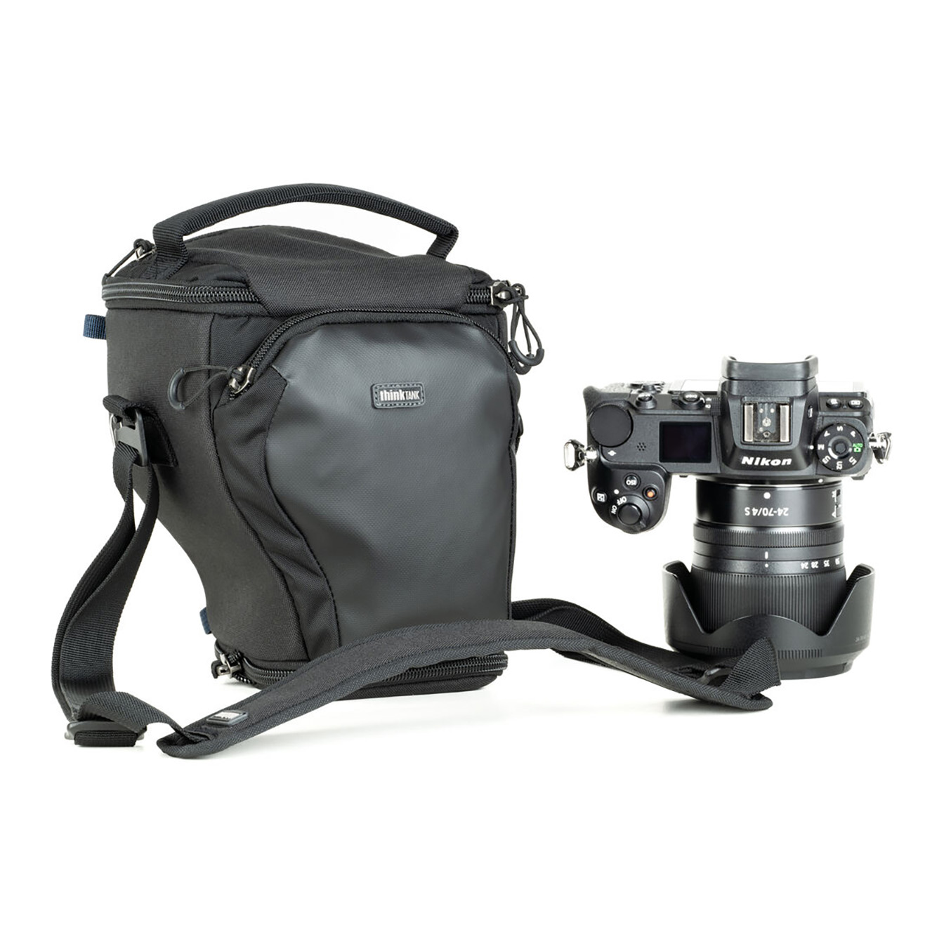 Safeguard your camera on the go with the Think Tank Photo V3 Digital Holster 10. Designed with adjustable interior dimensions from 6.5 to 9.8 inches, this holster easily accommodates a large compact camera with a 28-70mm lens and reversed hood. The versatile “pop down” feature allows you to extend the holster to fit a camera with a 24-70mm f/2.8 lens and reversed hood.