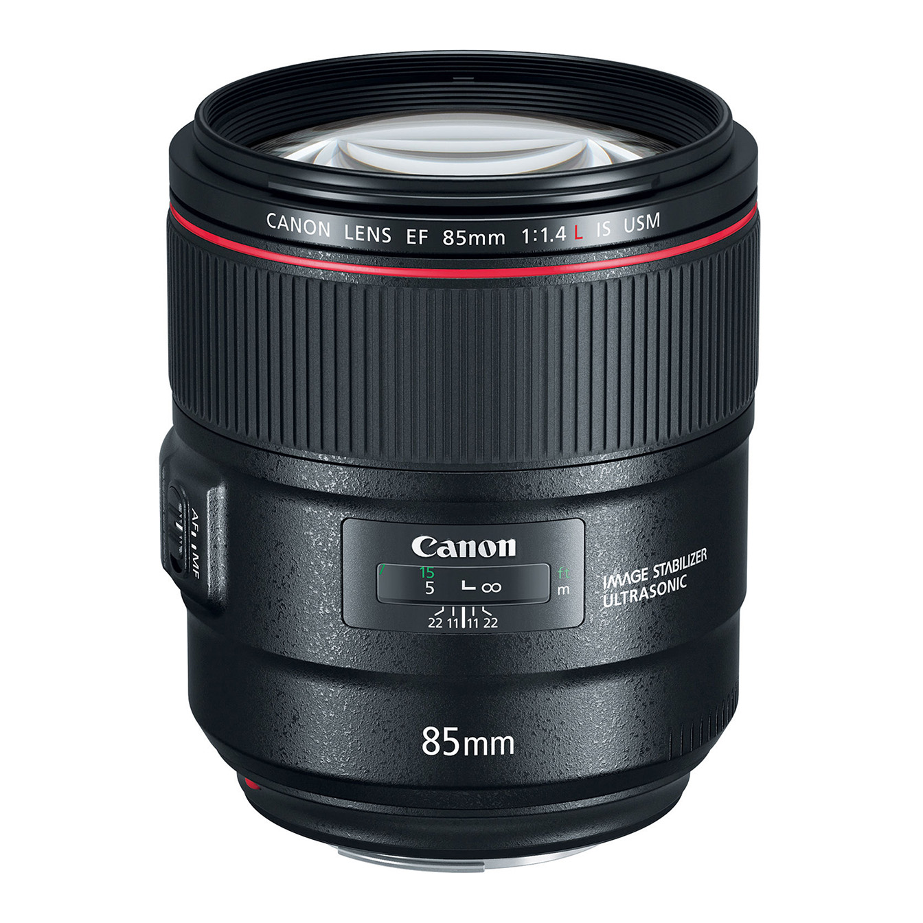 Canon EF 85mm f/1.4L IS USM Lens with hood.