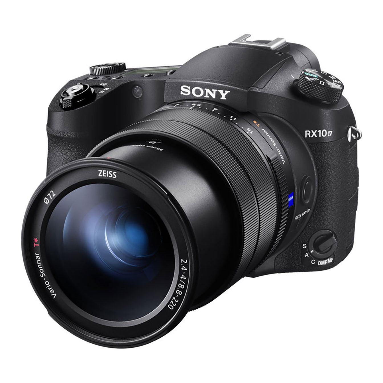 The Sony RX10 IV is a premium fixed-lens bridge camera built around a 20.1-megapixel 1-inch Exmor RS stacked CMOS sensor, paired with a ZEISS Vario-Sonnar T* 24-600mm equivalent f/2.4-4 zoom lens covering an exceptionally broad focal range in a single self-contained body. The stacked sensor architecture enables fast readout speeds that support blackout-free continuous shooting at up to 24fps and 4K video recording with minimal rolling shutter. Sony’s Fast Hybrid AF system combines phase-detection and contrast-detection autofocus, providing rapid acquisition and subject tracking performance well suited to fast-moving subjects across the zoom range. Video capabilities extend to 4K with full pixel readout and HLG picture profile support for high dynamic range workflows, alongside high-speed 1000fps slow-motion recording at reduced resolution. A fully articulating rear LCD touchscreen and a high-resolution electronic viewfinder provide flexible monitoring options across a range of shooting situations.
