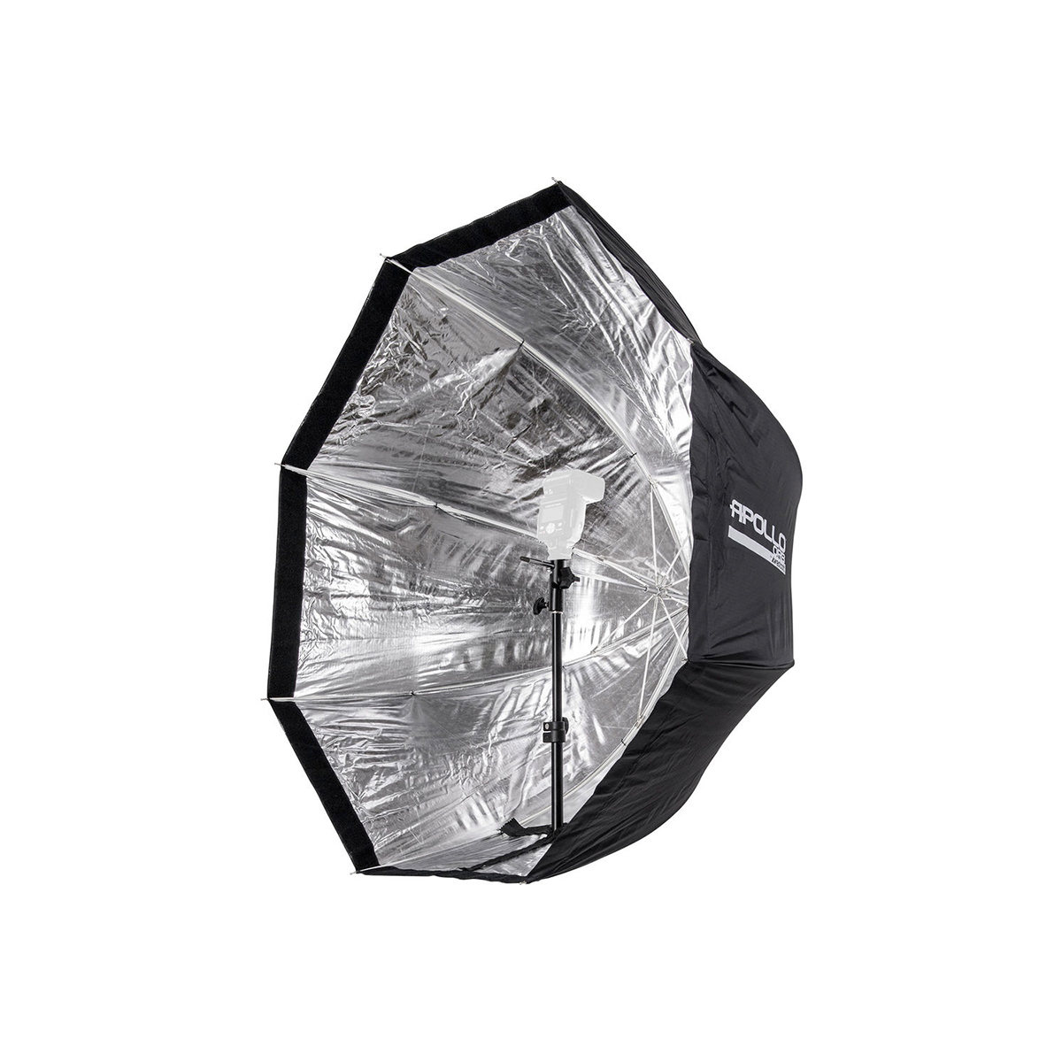 Wescott’s Apollo Orb is the first octagonal softbox that works without an adapter ring. The compact soft box simply opens like an umbrella. Place your flash inside, attach the included diffusion panel and you’re ready to shoot. The Orb has a deeper profile which evenly projects the light source for maximum output while creating round, natural catchlights in the eyes. For even more directional control and to prevent lens flare, you can recess the diffuser closer to the light than its standard position. The kit includes the Orb an 8.0′ light stand and a stand mount with shoe mount for speedlites.